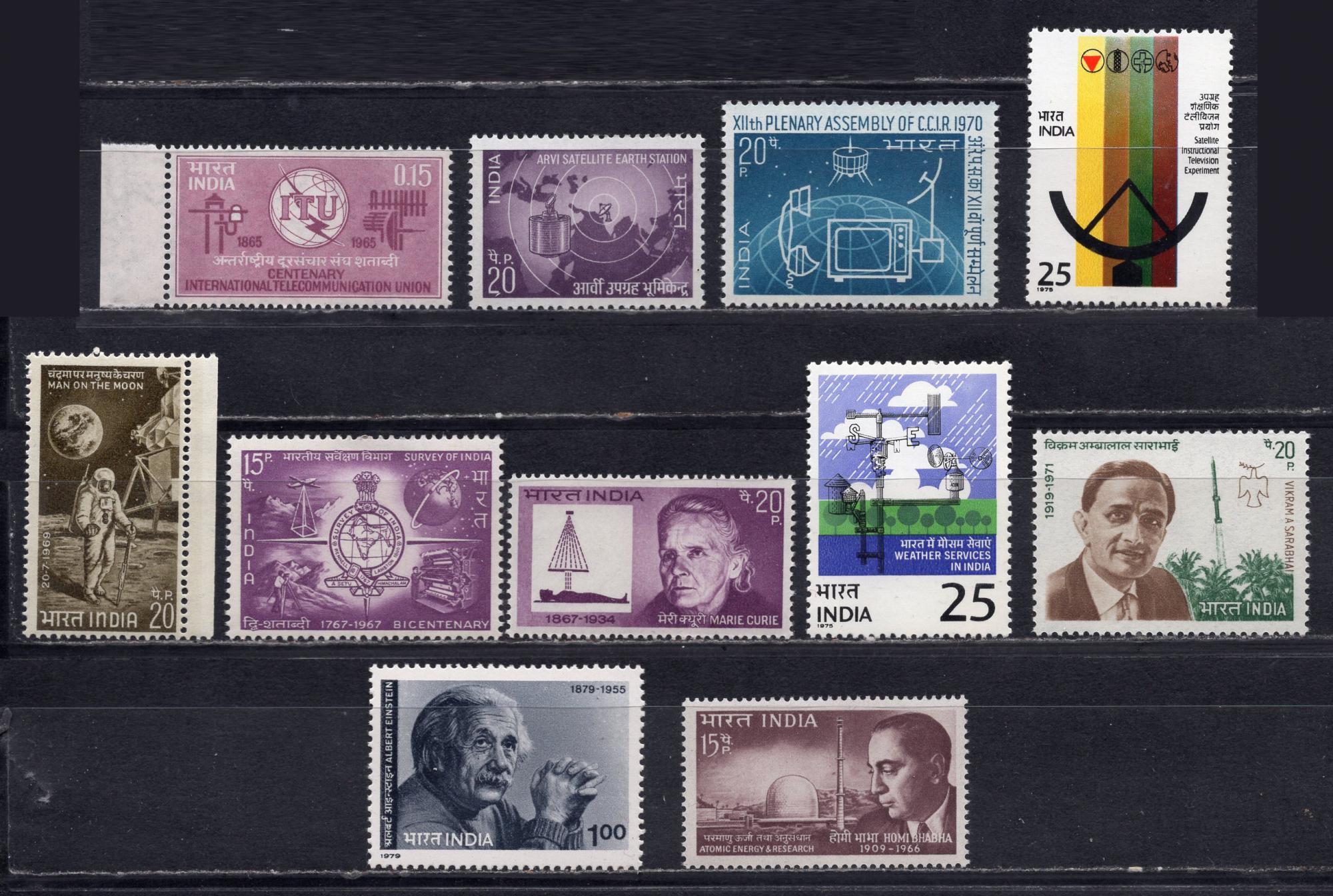 Почтовые марки. Индия. 1965-1981гг. Космос. М.Кюри. Эйнштейн. Атомная энергия. Сборный лот. №386.414.426.460.487 etс. (Mi: 18.00 Евро)