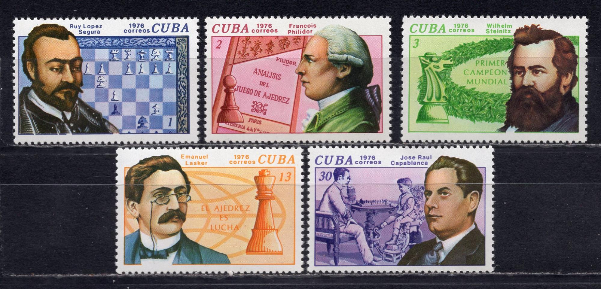 Почтовые марки. Куба, 1976 г. Шахматы. Чемпионы мира. №2117-2121.
