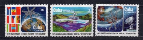 Почтовые марки. Куба, 1974 г. №2015-2017. Космос. Система "Интерспутник".