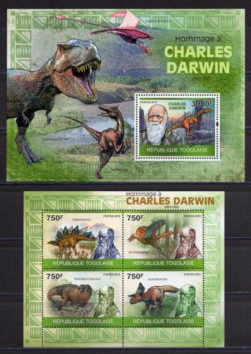 Почтовые марки. Того. 2010. Чарльз Дарвин и Динозавры. Блок №512, №3504-3507.
