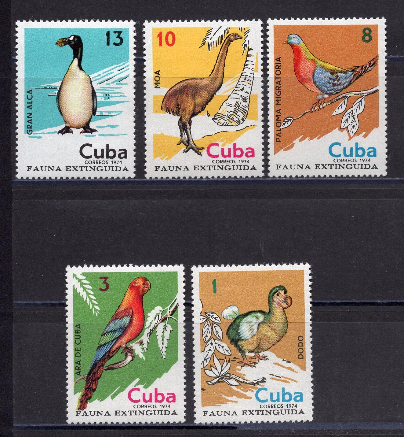 Почтовые марки. Куба, 1974г. Вымершие птицы. MiNr. 1980 - 1985.