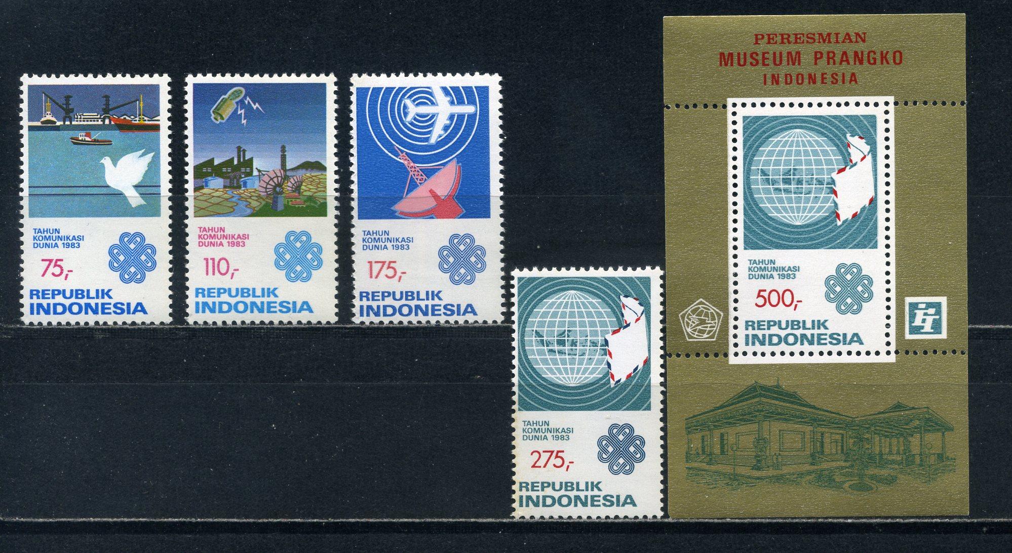 Почтовые марки. Индонезия. 1983г. Год коммуникаций. №1093-1096. Блок №51.(Mi: 13.00 Евро)