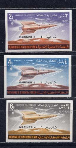 Почтовые марки. Йемен. 1965г. Космос. Маринер-4. Надпечатка. №165В-167В. Беззубц. (Mi: 35.00 Евро)