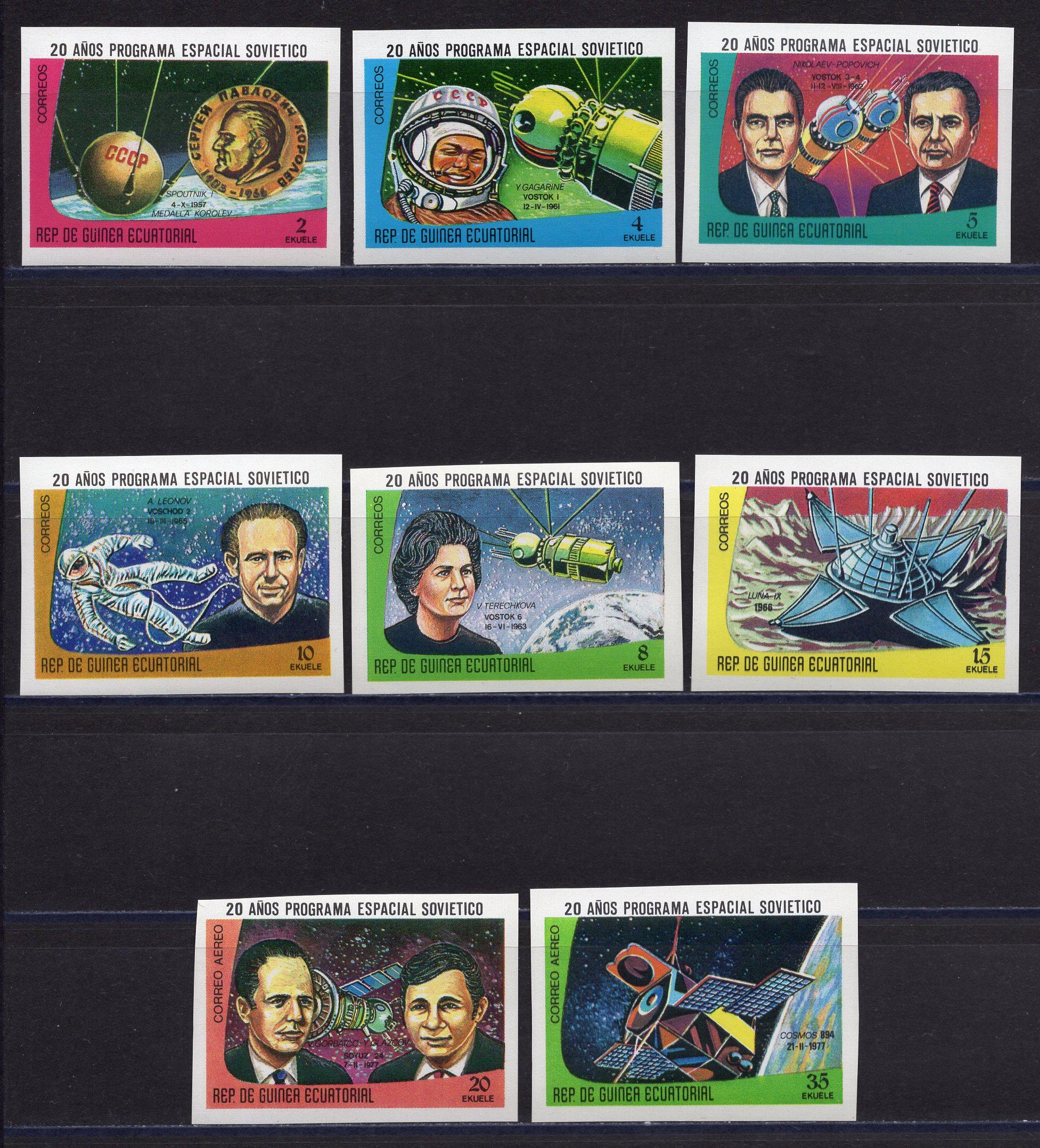 Почтовые марки. Экваториальная Гвинея. 1978г. Космос. Гагарин. №1269в-1276в. Беззубц.