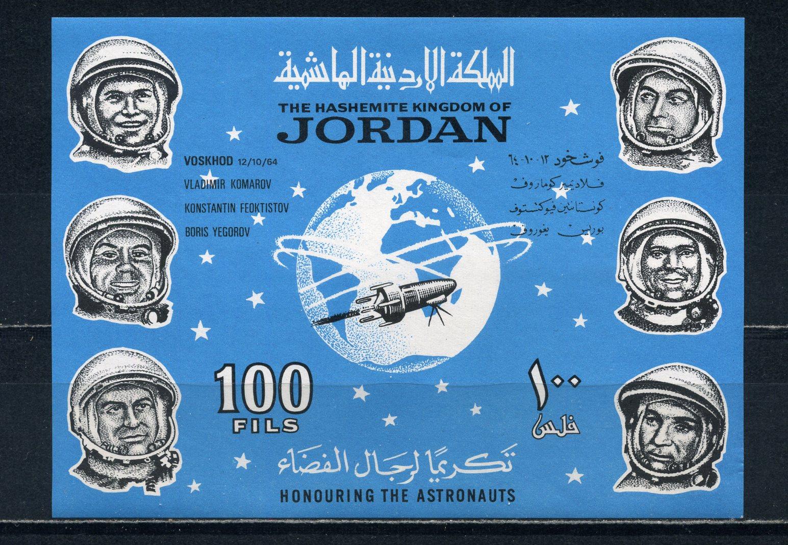 Почтовые марки. Иордания. 1965г. Космос. Астронавты. Надпечатка. Блок №19в. Беззубц.