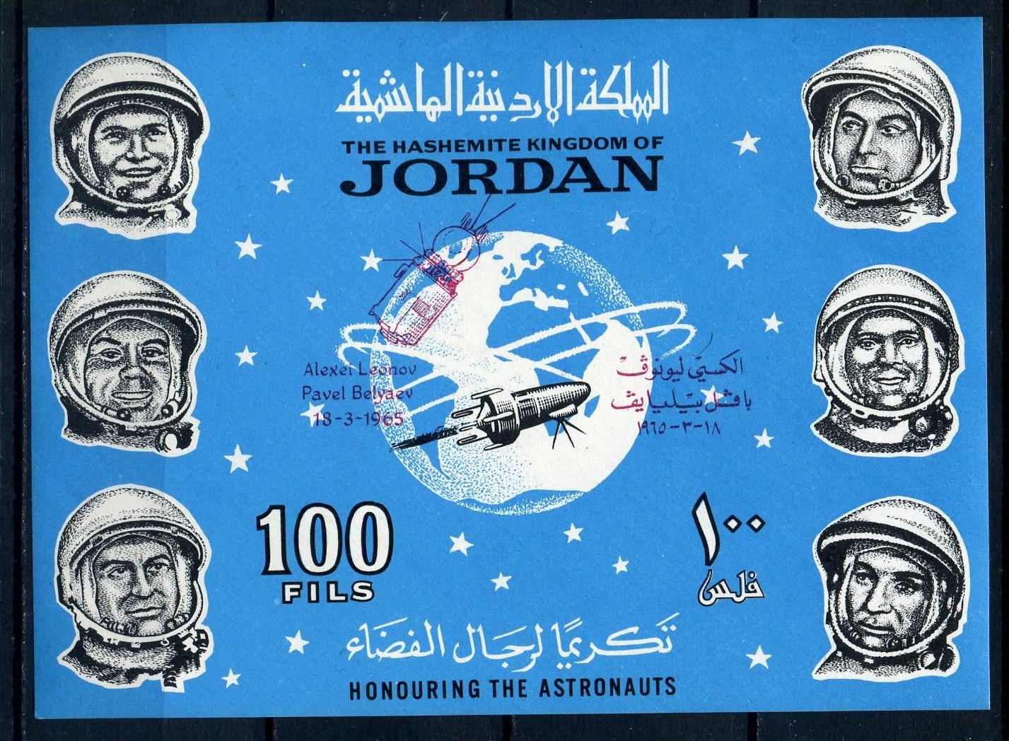 Почтовые марки. Иордания. 1966г. Блок №30в. Беззубц. Космос. Восход-2. Надпечатка. (Mi : 60.00 Euro)