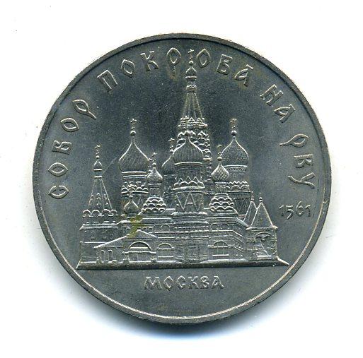 Монеты СССР. 5 рублей 1989 г. Собор Покрова на рву.