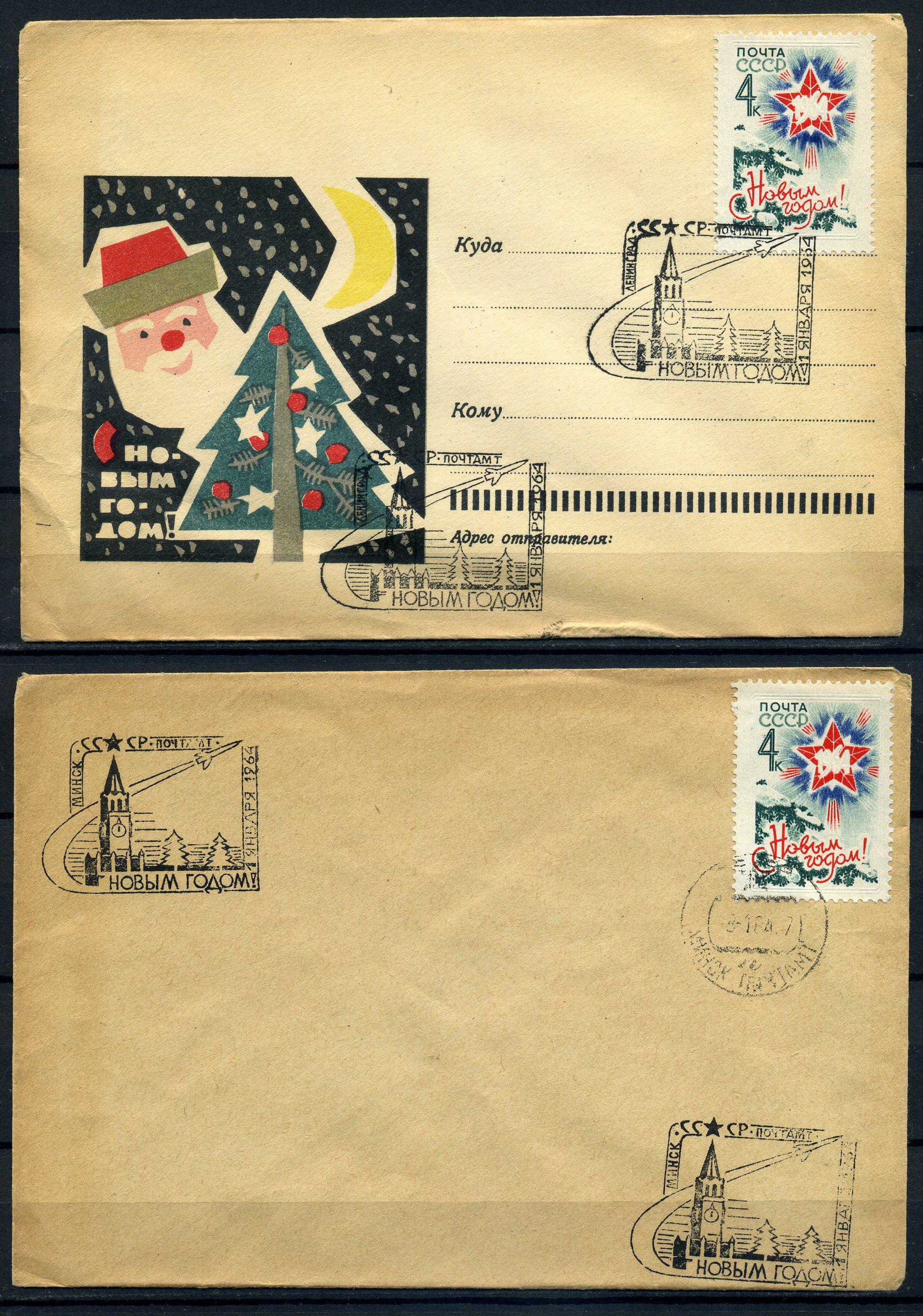 Немаркированные конверты с маркой и СГ. СССР 1964 г. С Новым годом! КЗ.