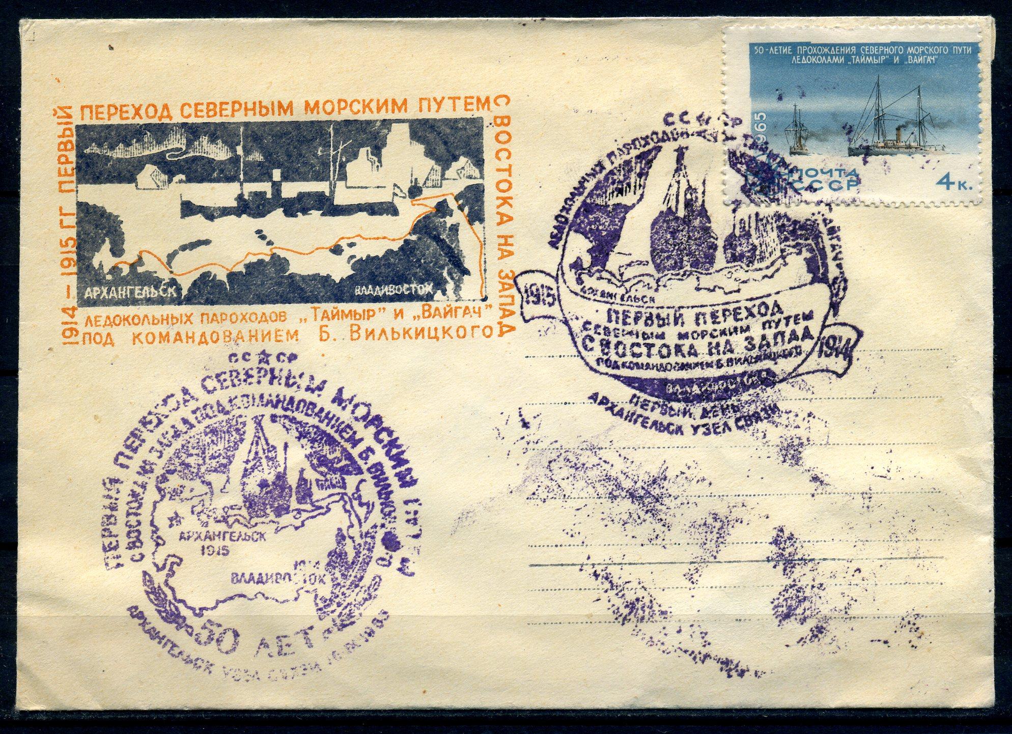 Немаркированный конверт с маркой и СГ. СССР 1965 г. Переход северным морским путем. КО.