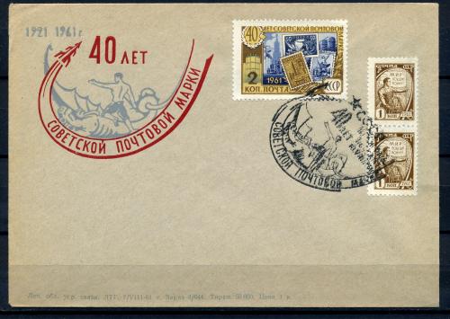 Немаркированный конверт с марками и СГ. СССР 1961г. 40 лет Советской почтовой марке. КО.