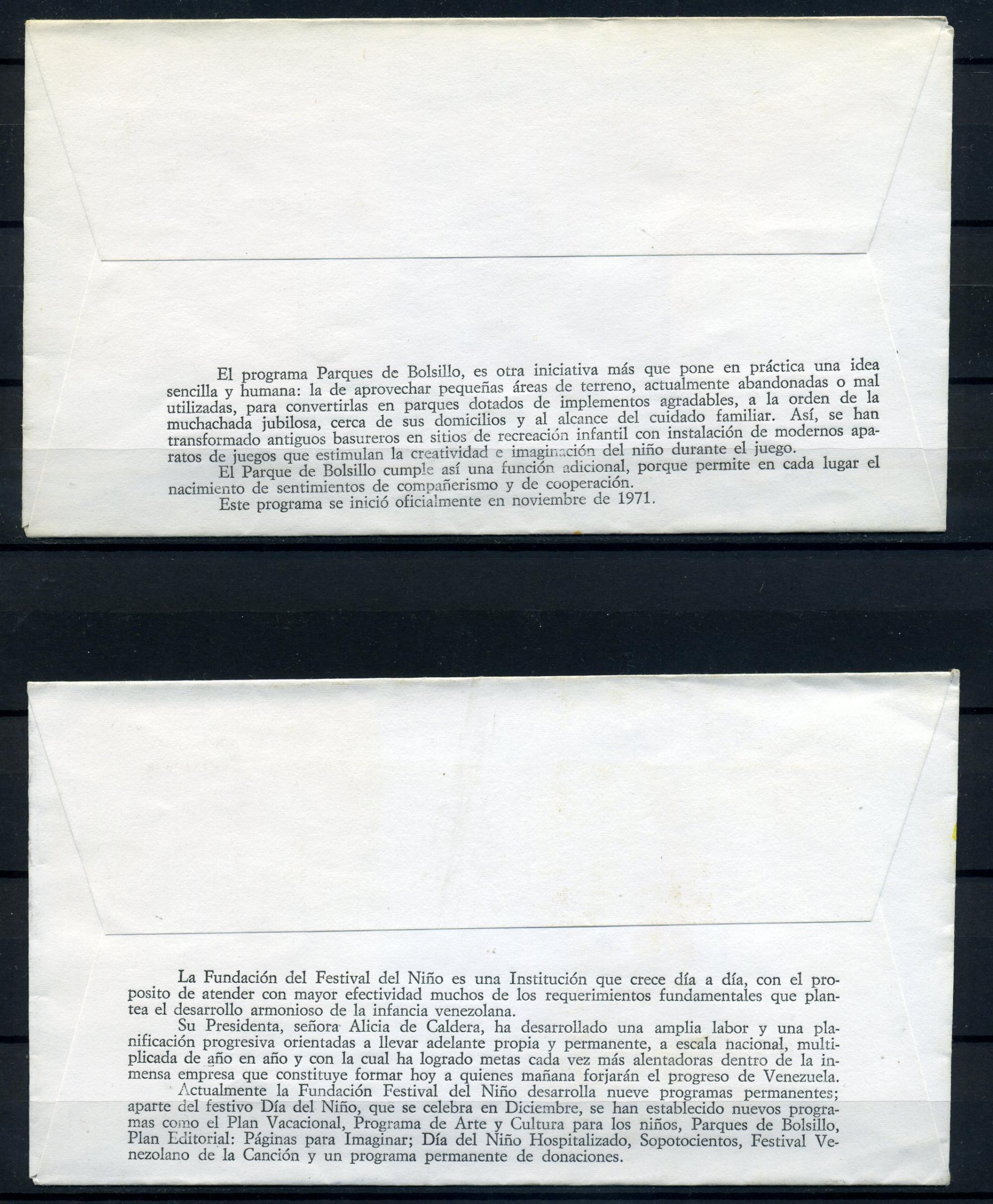 Конверты с марками и СГ. Венесуэла 1973 г. Фестиваль детского фонда. КО.