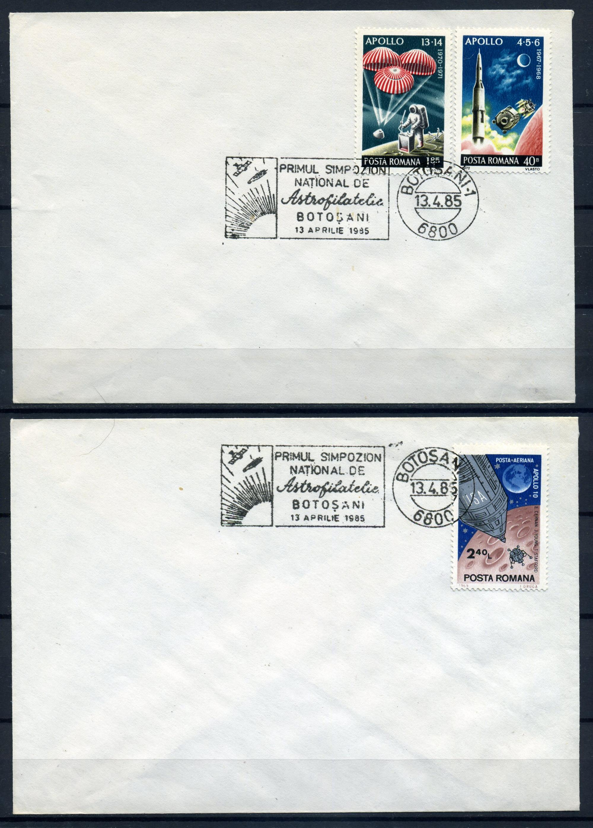 Немаркированные конврты с марками и СГ. Румыния 1972 г. Программа "Аполлон". Астрофилателия. КО.