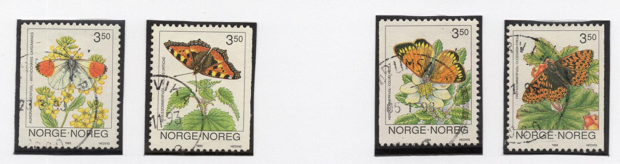 Почтовые марки. Норвегия, 1993-1994 г. №1114-1115, 1143-1144. Бабочки.