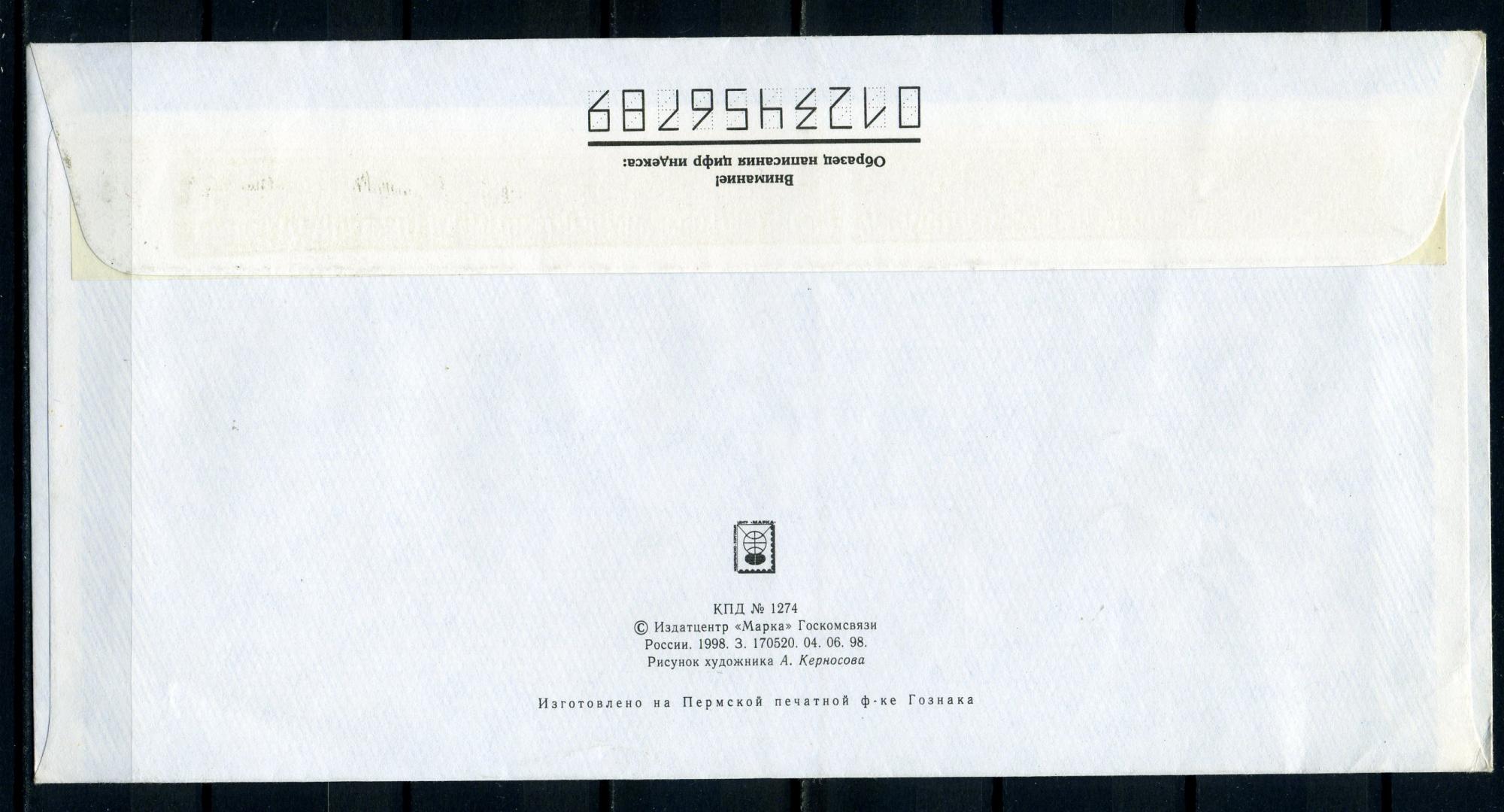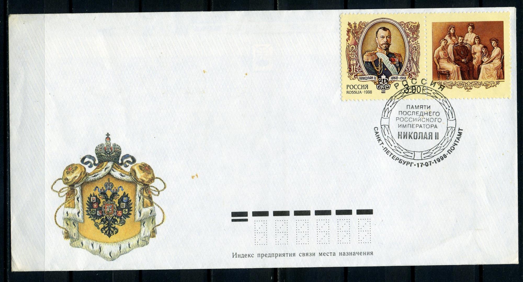 Конверт с маркой и СГ. Россия 1998 г. Памяти последнего Российского императора Николая II. КО.