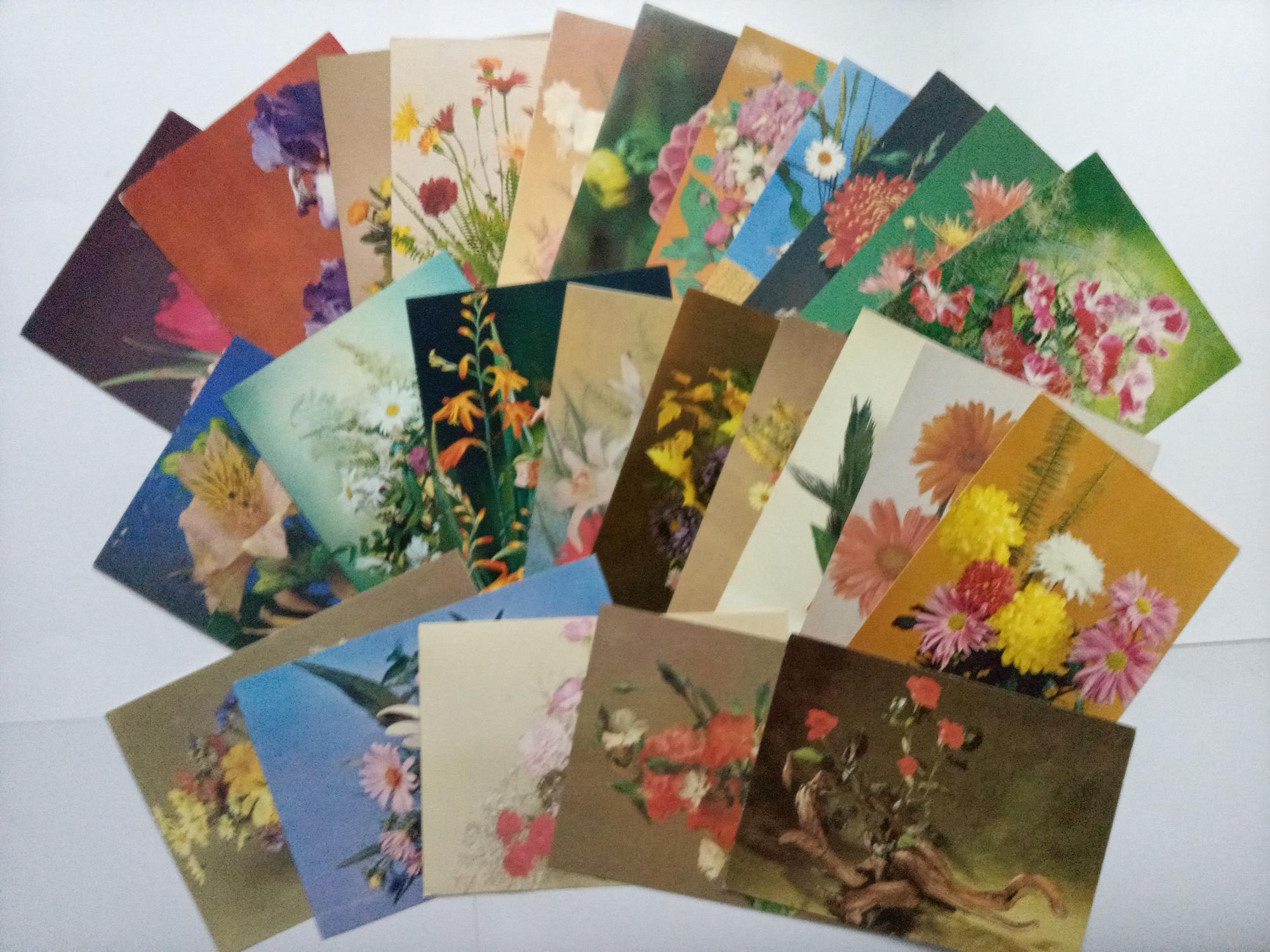 Комплект открыток. СССР 1980-е гг. Цветы. (25 шт.).