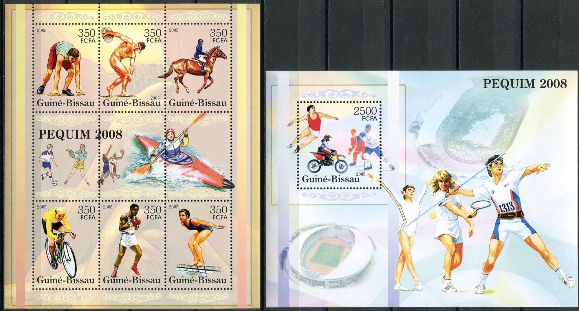 Почтовые марки. Гвинея-Биссау. 2005. Ол. Игры в Пекине. МЛ + блок. № 3121-3126, Бл. 520