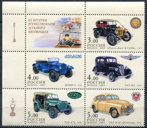 Почтовые марки. Россия. 2003. Автомобили. № 889-893.