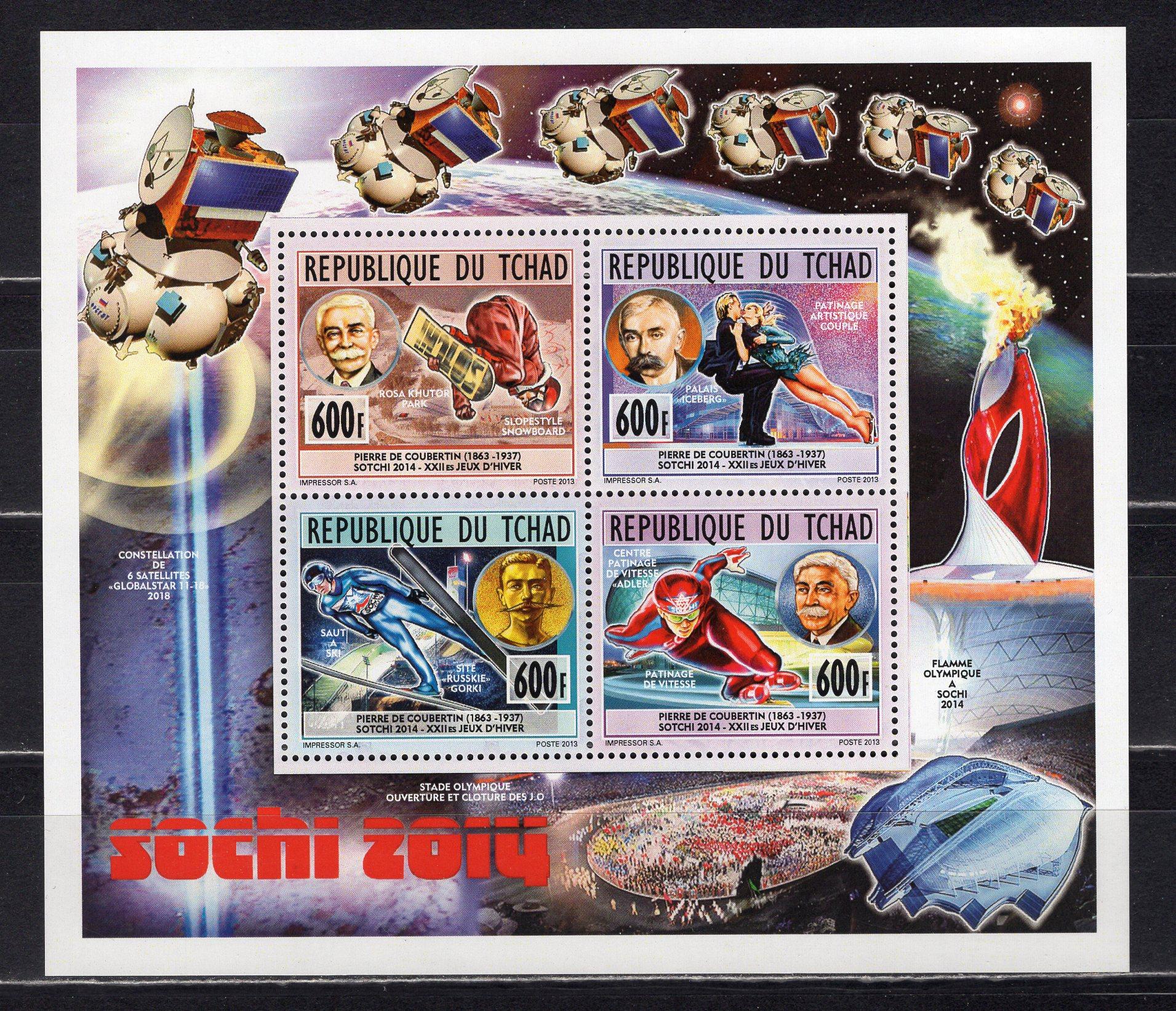 Почтовые марки. Чад. 2013г. Олимп. Игры в Сочи. Космос. №2698-2701. МЛ (II вар. Mi: 30.00 Евро)
