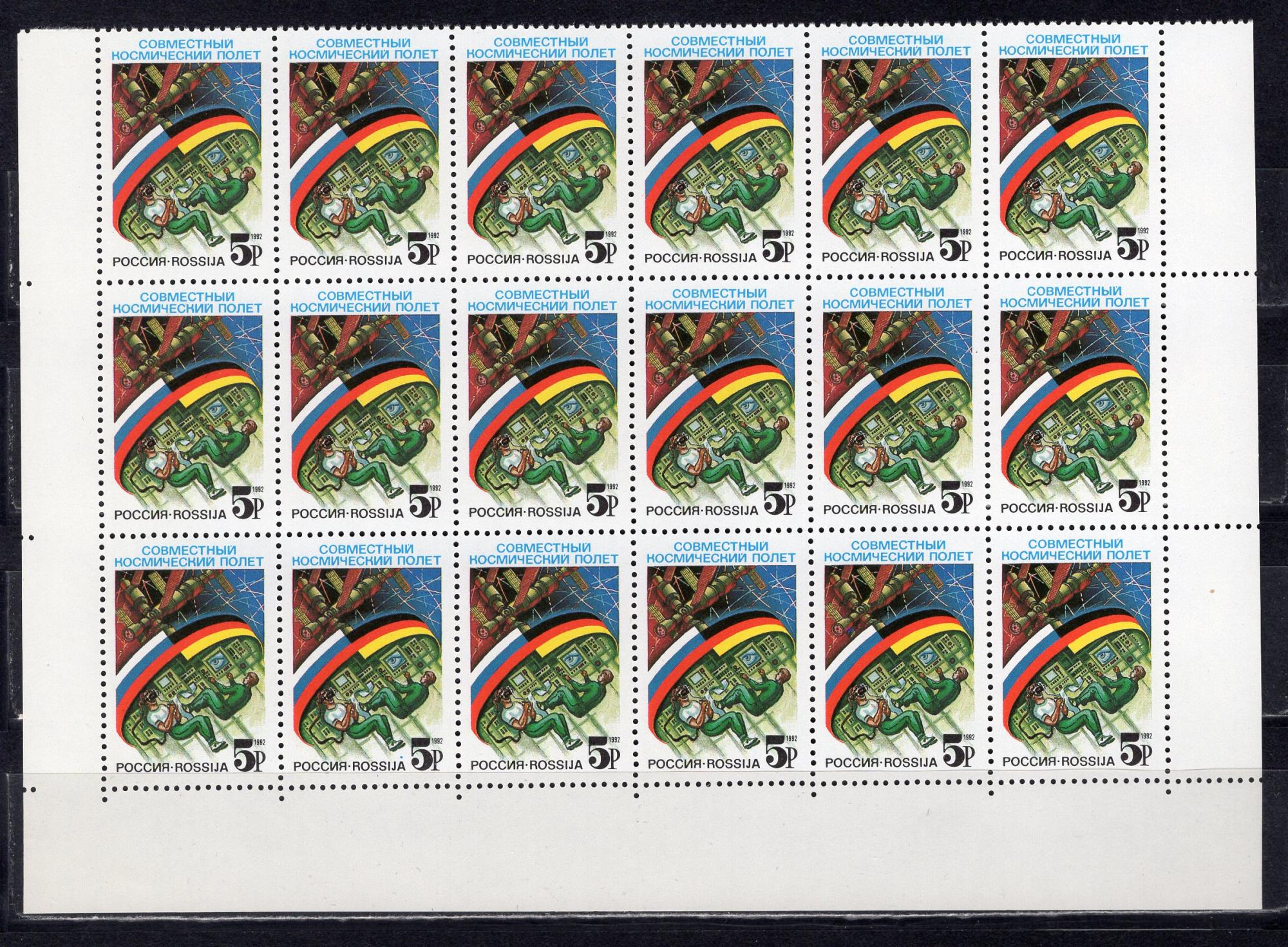 Почтовые марки. СССР. 1992г. Космос. Совместный полёт. №10. Сцепка из 18 марок.