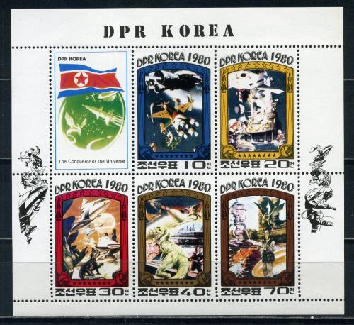 Почтовые марки. КНДР. 1980г. Космическая фантастика. МЛ. №2003-2007 (Mi: 12.00 Евро)