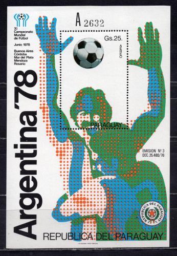 Почтовые марки. Парагвай. 1978г. Футбол. Блок №324 (Mi 30.0 e).