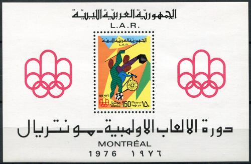 Почтовые марки. Ливия. 1976г. Олимп. Игры в Монреале. Блок №21.