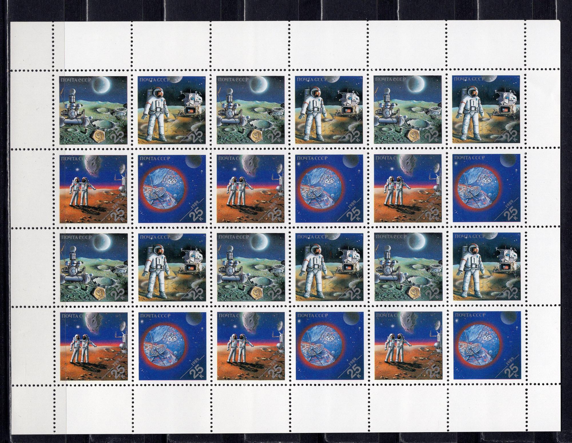 Почтовые марки. СССР. 1989г. Космос. ЭКСПО'89. №6139-6142. Лист (Кат.: 300р.).