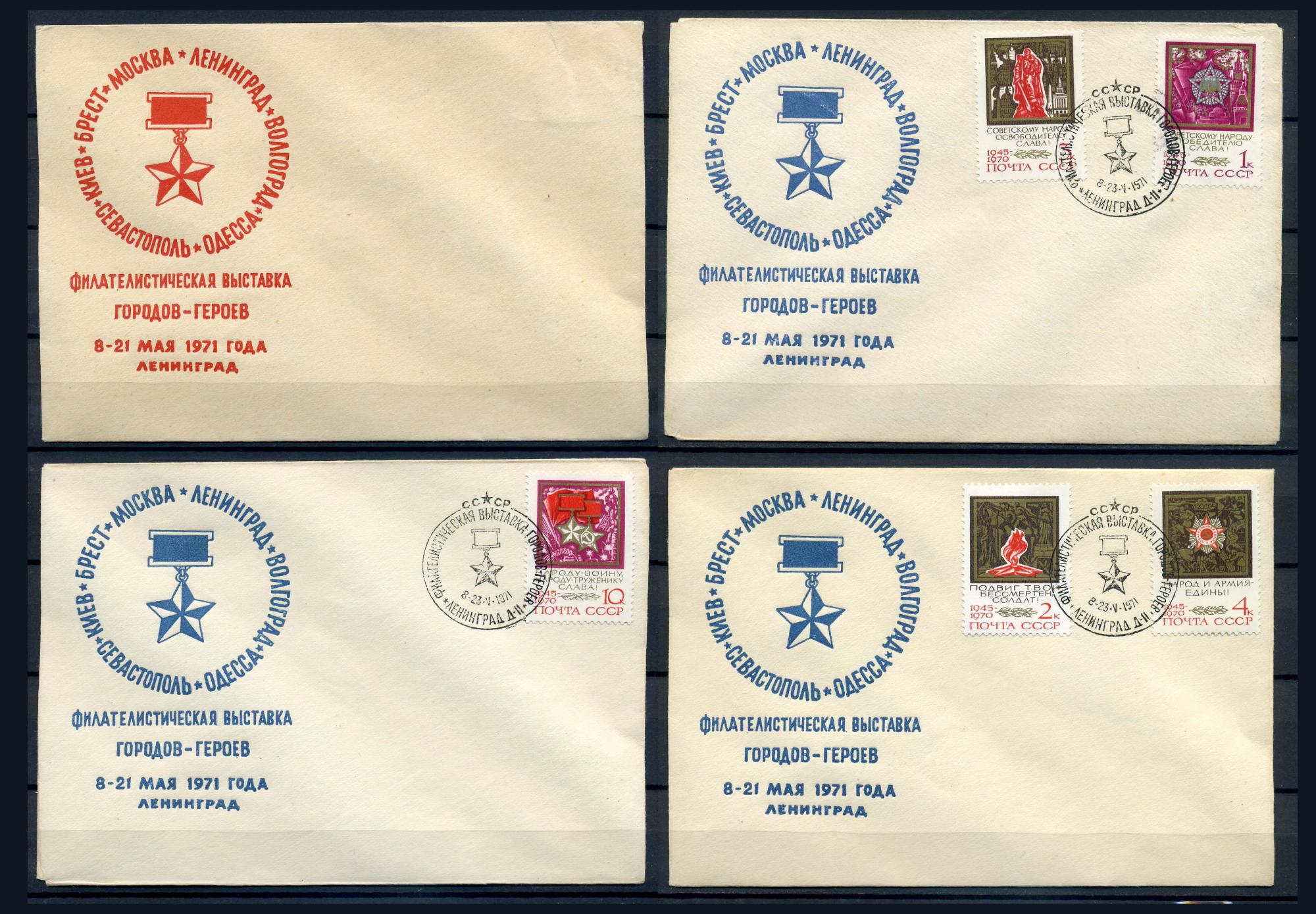 Немаркированные конверты с марками и СГ. СССР 1971 г. Фил. выставка городо-героев. КЗ.