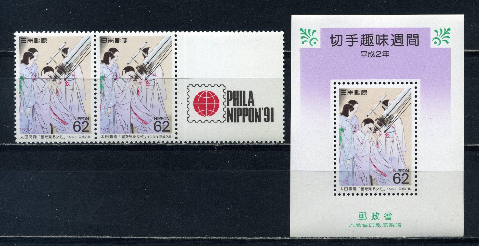 Почтовые марки. Япония. 1990г. Филвыставка. Астрономия. №1905. Сцепка. Блок №145.