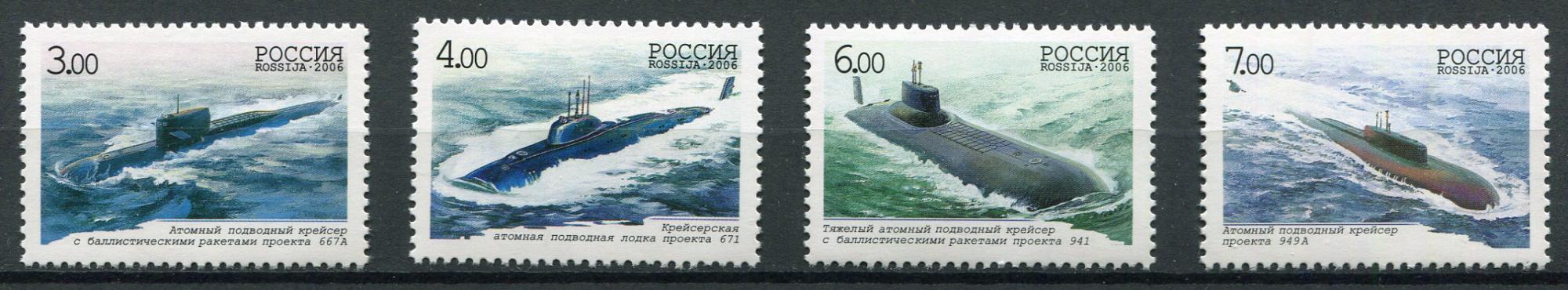 Почтовые марки. Россия. 2006г. Подводные лодки. Серия. №1079-1082 (Кат.: 400р.).
