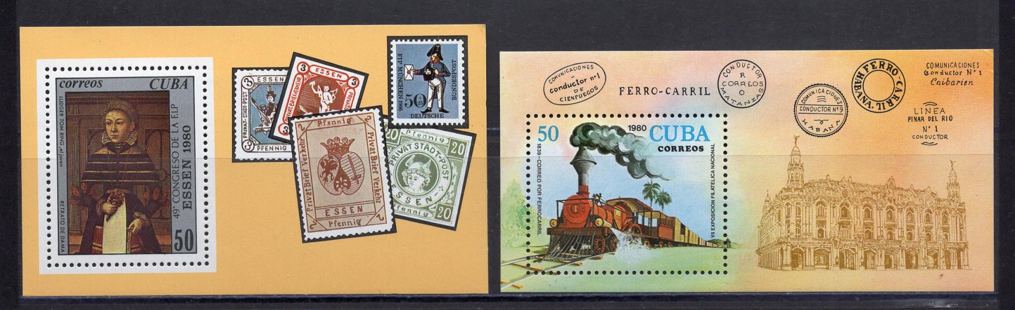 Почтовые марки. Куба. 1980. Филвыставка. Марки. Локомотивы. Блок №64-65.