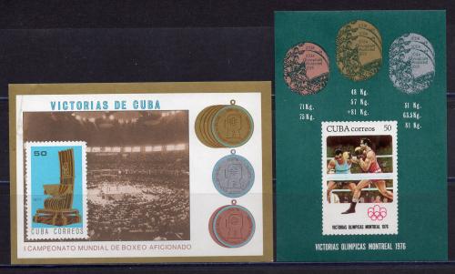 Почтовые марки. Куба. 1975-1976. Бокс. Спорт. Медали. Блок №44, №47. (См.сост.)