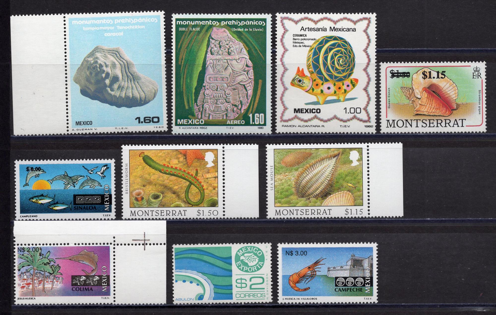 Почтовые марки. Мексика и Монтсеррат. 1980-1996г. Море. Рыбы. Надпечатка. Сборный лот.