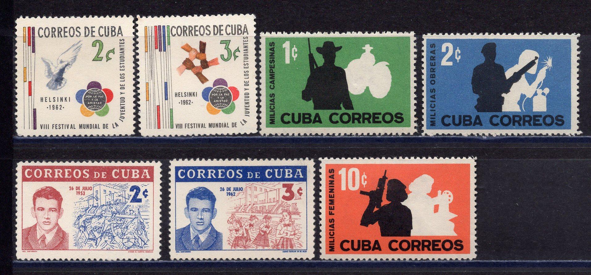 Почтовые марки. Куба. 1962г. Народная милиция. Фестиваль студентов. №753-755, №801-804.