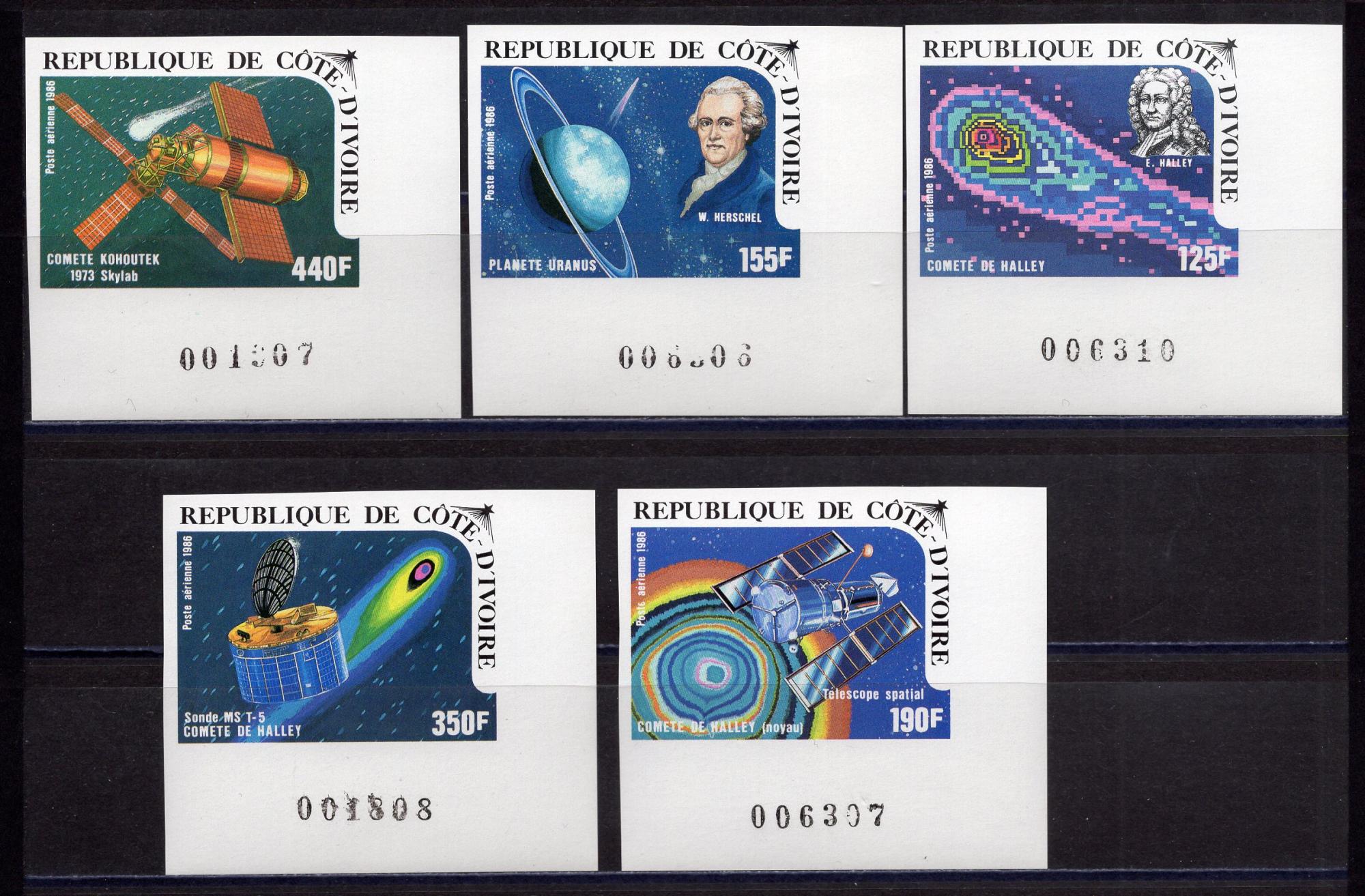 Почтовые марки. Кот д'Ивуар. 1986г. Космос. Комета. №888в-892в. Беззубц.