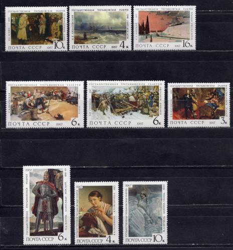 Почтовые марки. СССР, 1967 г. №3585-3593. Третьяковская галерея. (300 руб.)