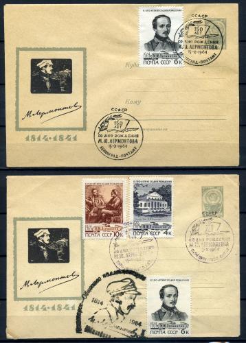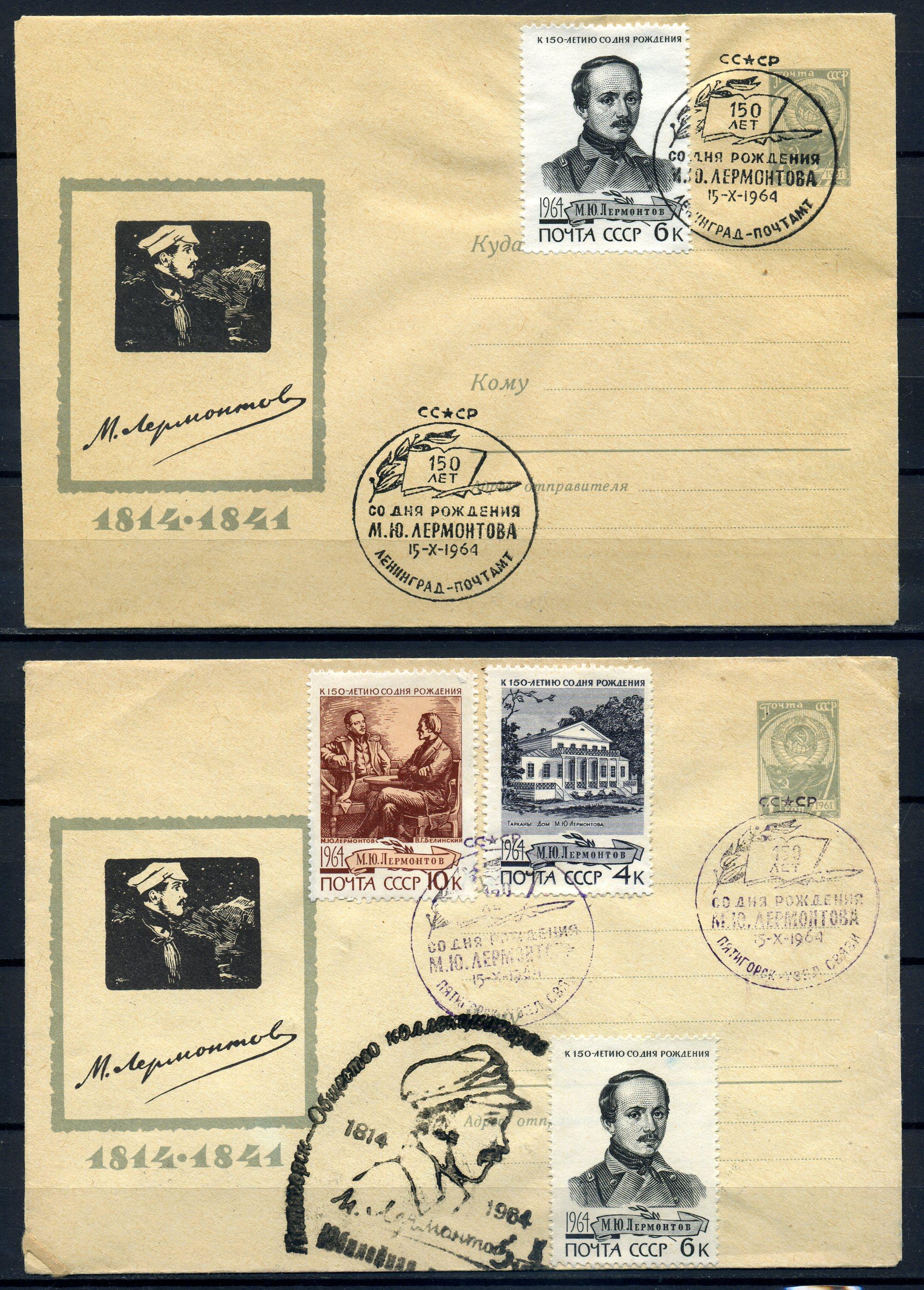 ХМК с маркой и СГ. СССР 1964 г. 150 лет со ДР. М.Ю. Лермонтова. КО.