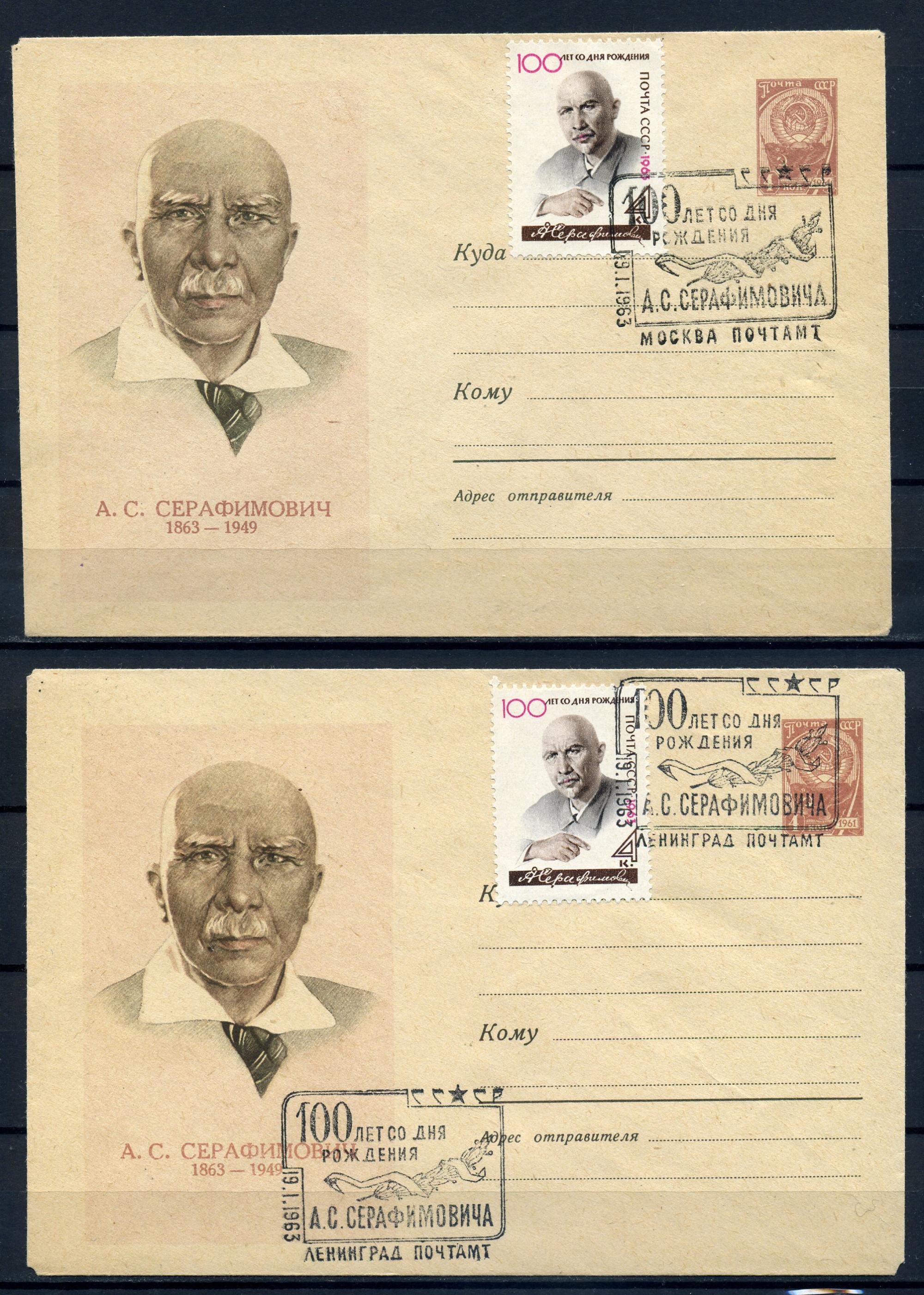 ХМК с маркой и СГ. СССР 1963 г. 100 лет со ДР А.С. Серафимовича. КО.