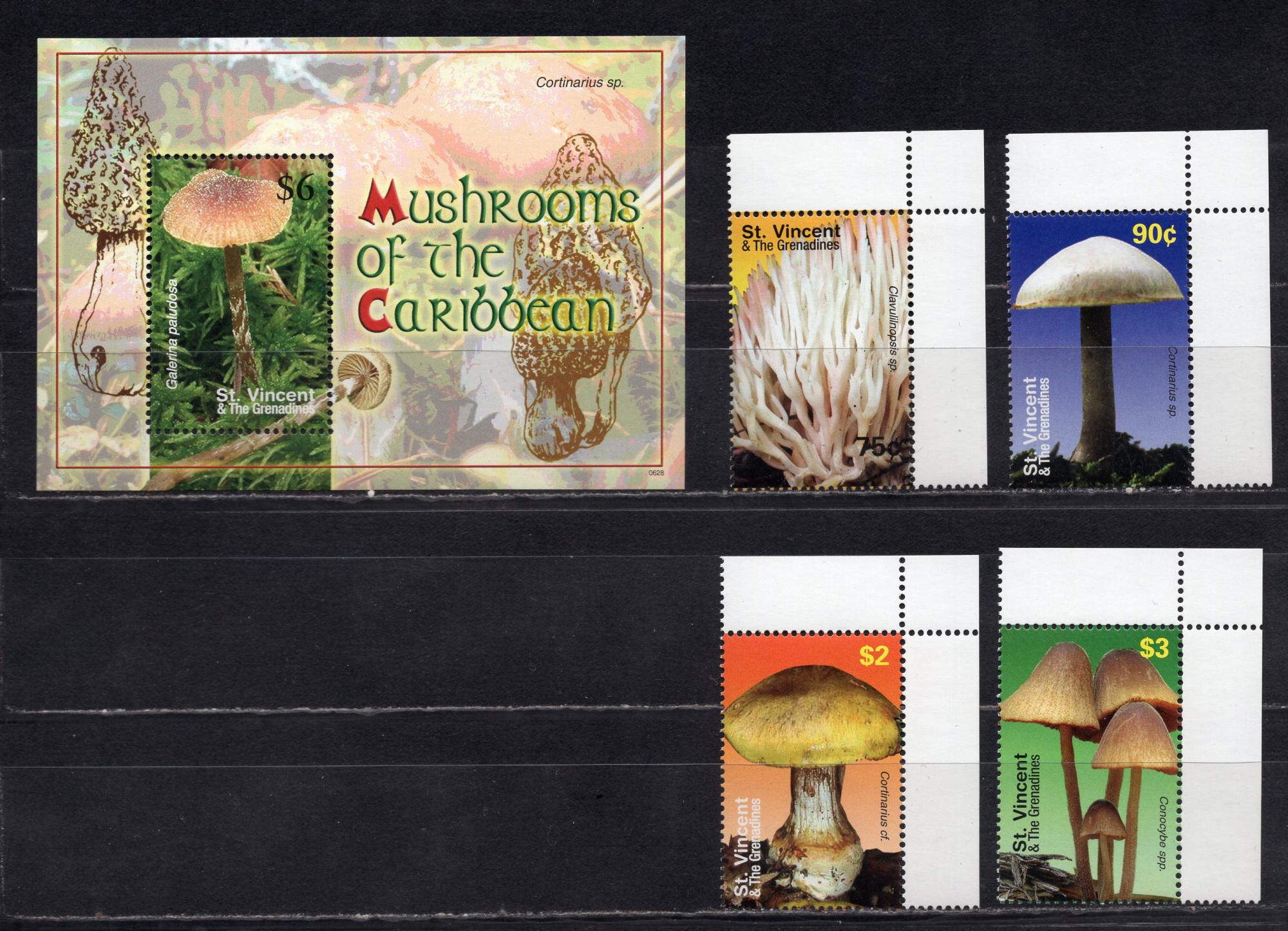 Почтовые марки. Сент-Винсент и Гренадины, 2007 г. Грибы. Бл. 672, №6345-6348.