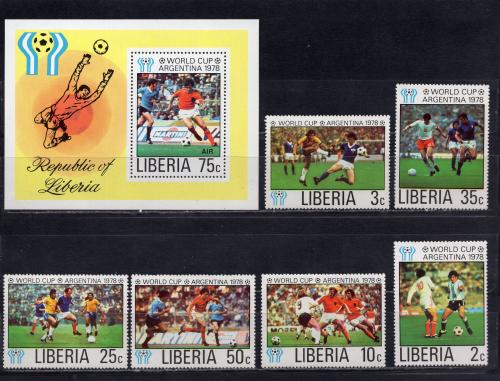 Почтовые марки. Либерия, 1978г. Футбол. №1061-1066, Бл. 90.