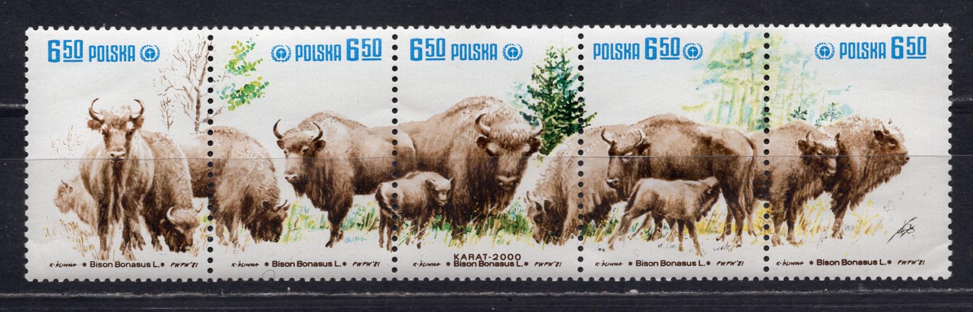 Почтовые марки. Польша, 1981 г. Зубры. №2764-2768.