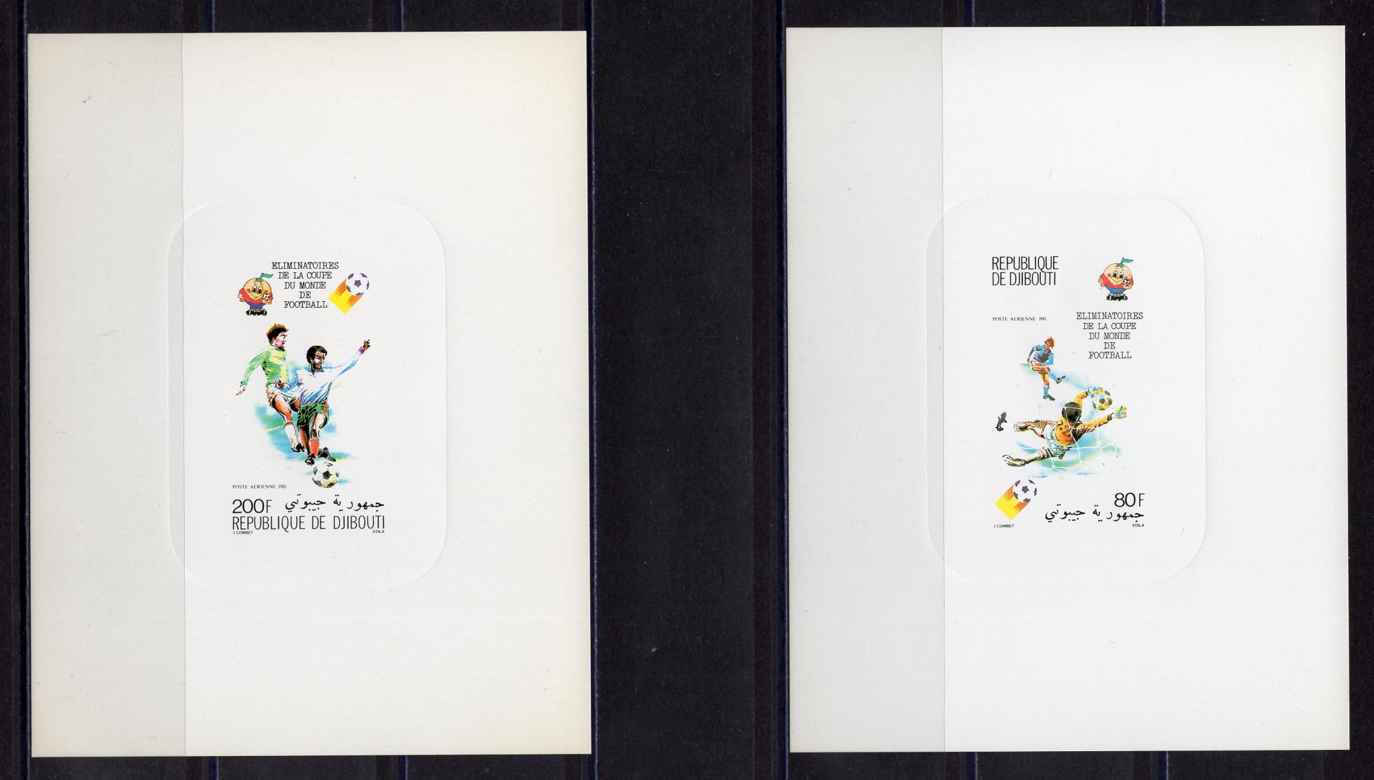 Почтовые марки. Джибути. 1981г. Футбол. Люкс-блок. №290-291. Тиснение.
