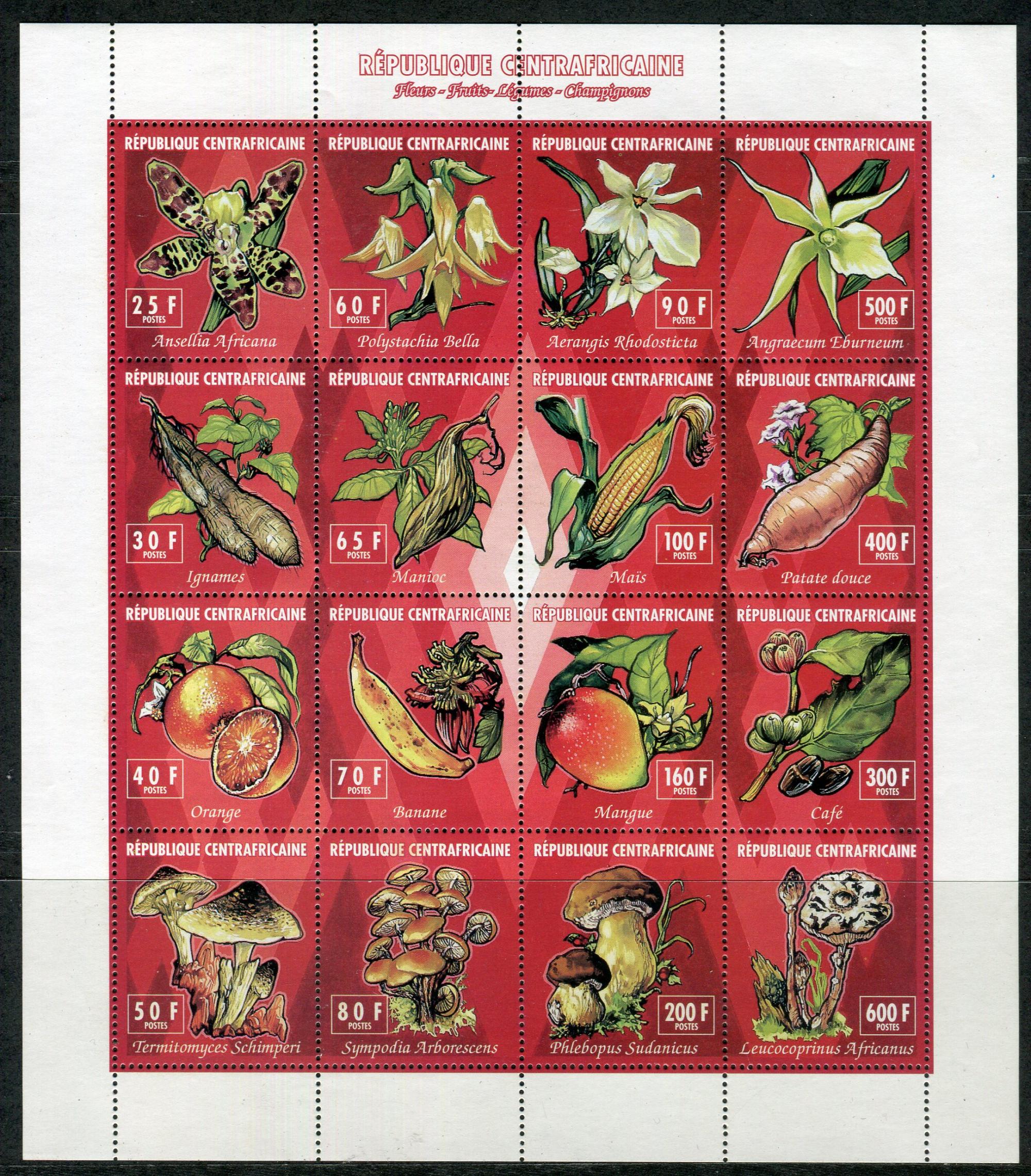 Почтовые марки. Центральноафриканская Республика, 1994 г. Цветы орхидеи, овощи, фрукты и грибы. Mi.No. 1568 - 1583
