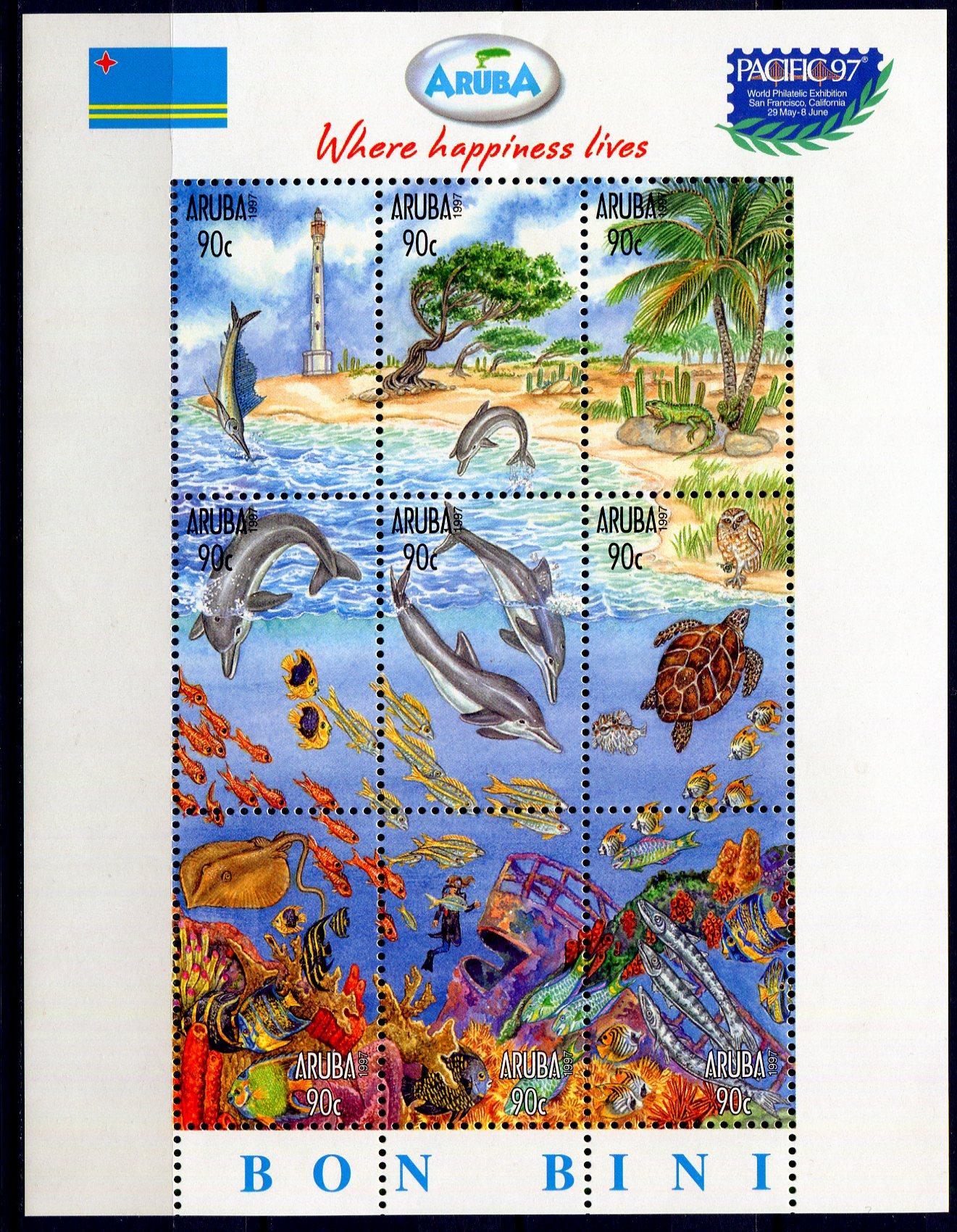 Почтовые марки. Аруба. 1997г. Фауна моря. Дельфины. Блок №1. (Mi: 18.00 Euro).