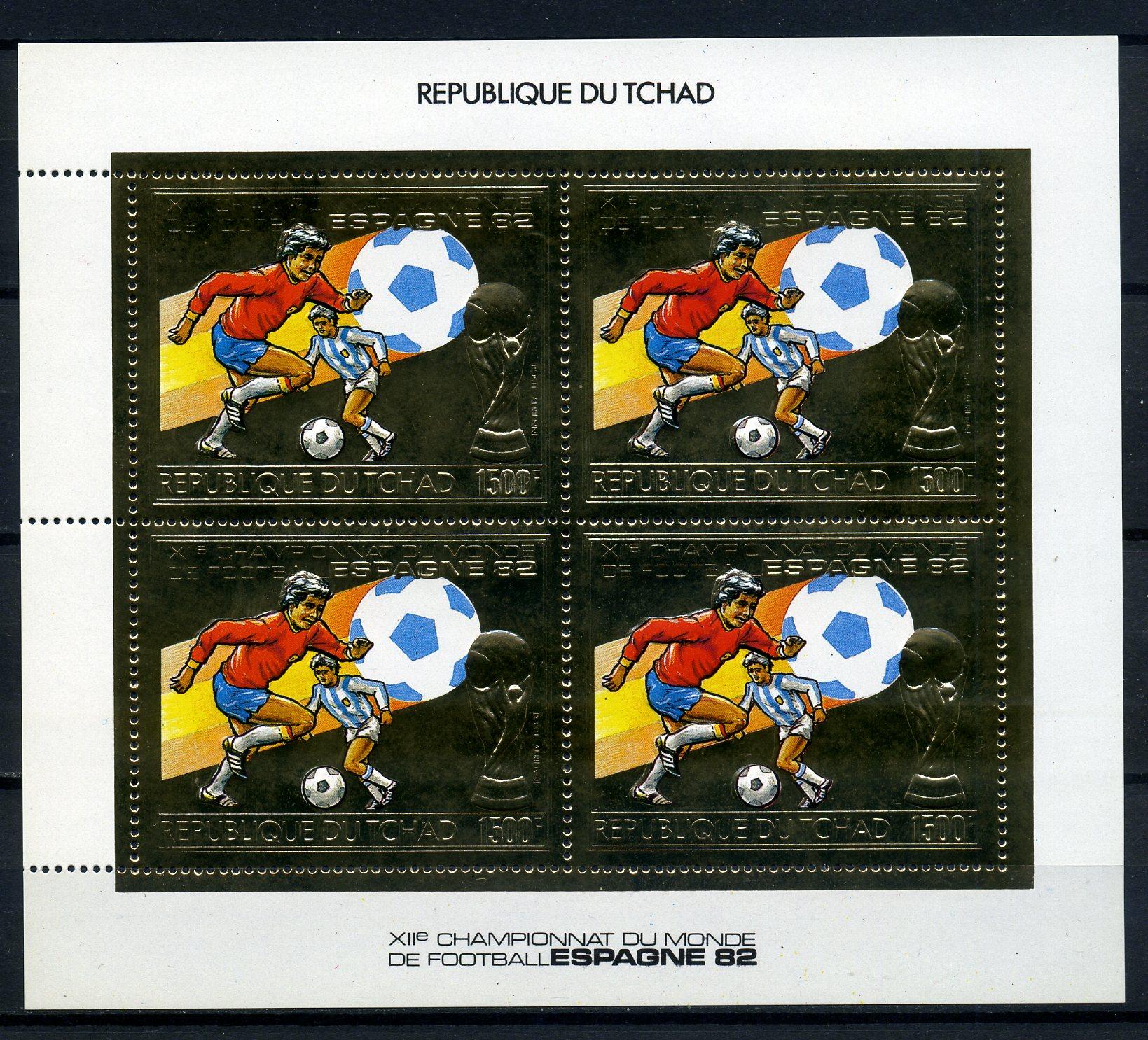Почтовые марки. Чад 1982 г. Футбол. Фольга. Золото. № 897. МЛ (Mi: 64.00 Евро).