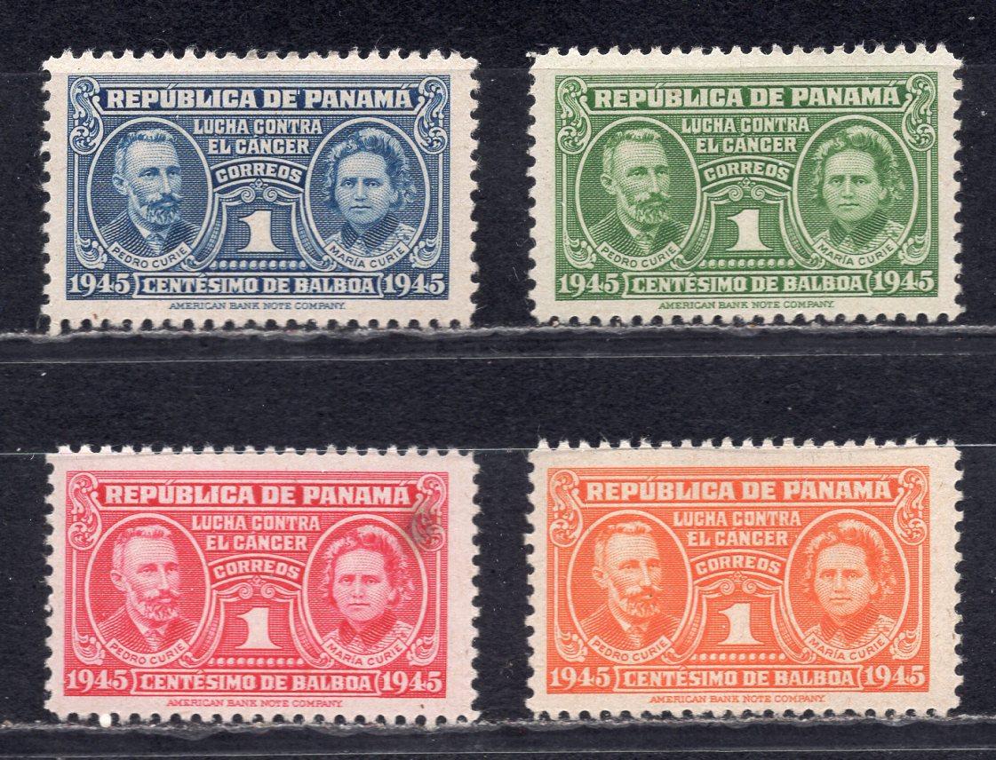 Почтовые марки. Панама. 1945. Пьер и Мария Кюри. Металлография. № 15-18. Чист с накл. ( См. сост.)