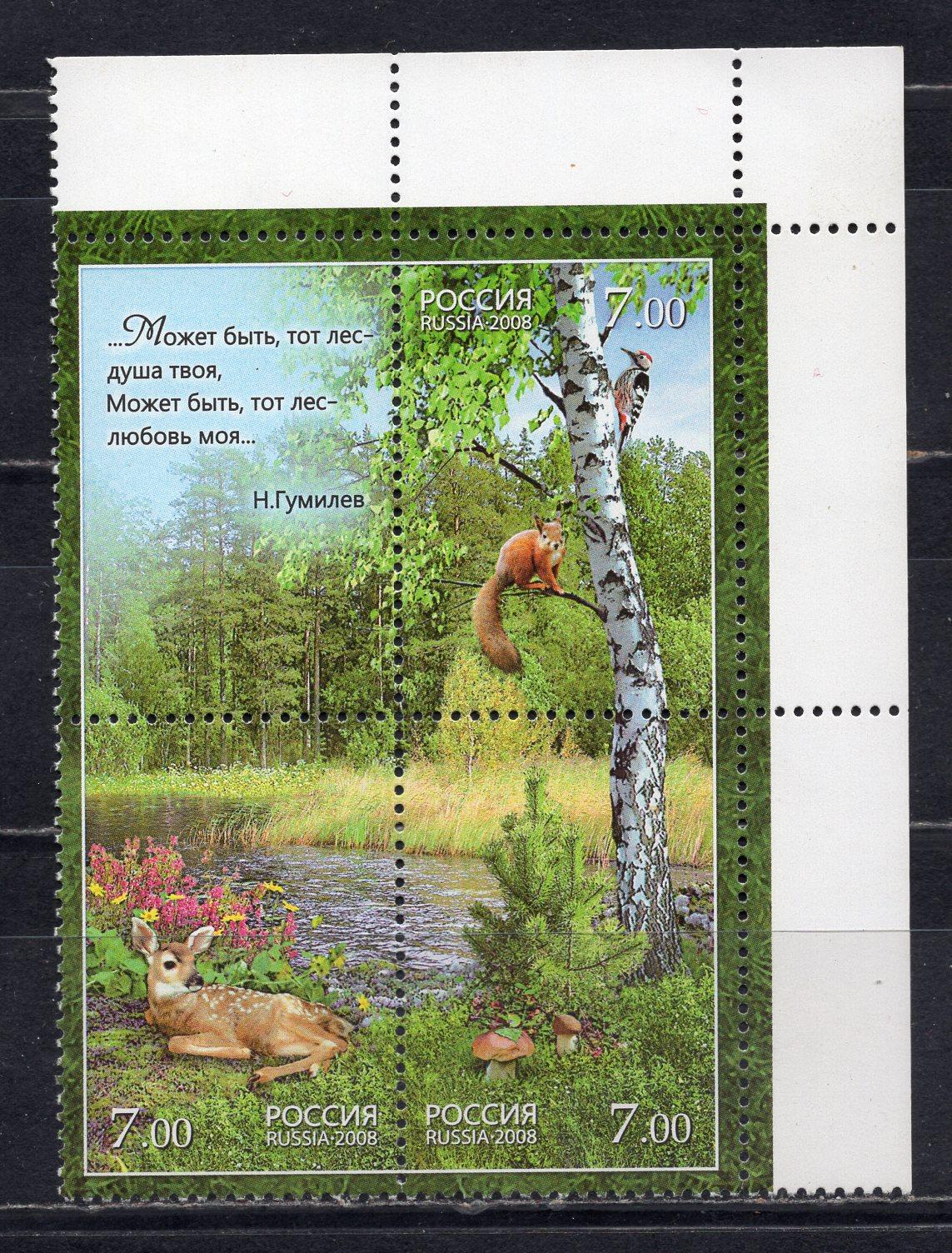 Почтовые марки. Россия, 2008 г. №1266-1268. Лес и его обитатели. (200 руб.)
