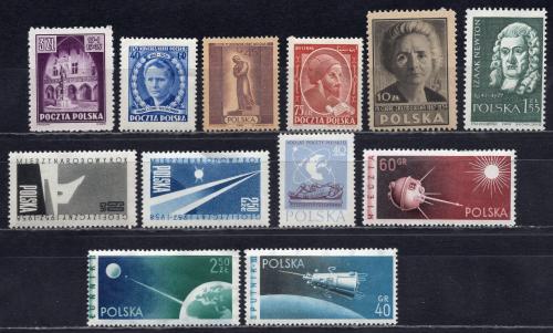 Почтовые марки. Польша, 1945-1959 г. №396, 460 etc. Мария Кюри, Авиценна, Космос. Сб. лот.