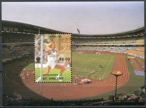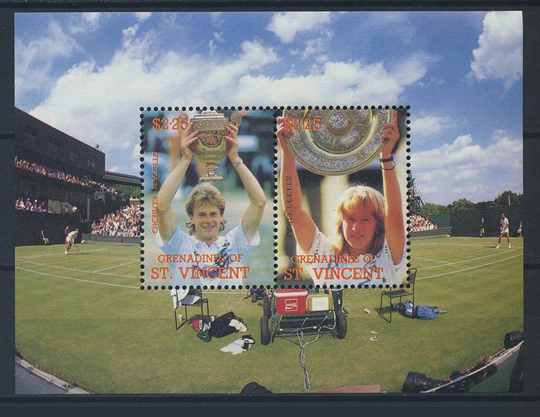 Почтовые марки. Гренадины. 1988г. Олимп. Игры. Теннис. Штеффи Граф. Патрик Шёберг. Блоки.