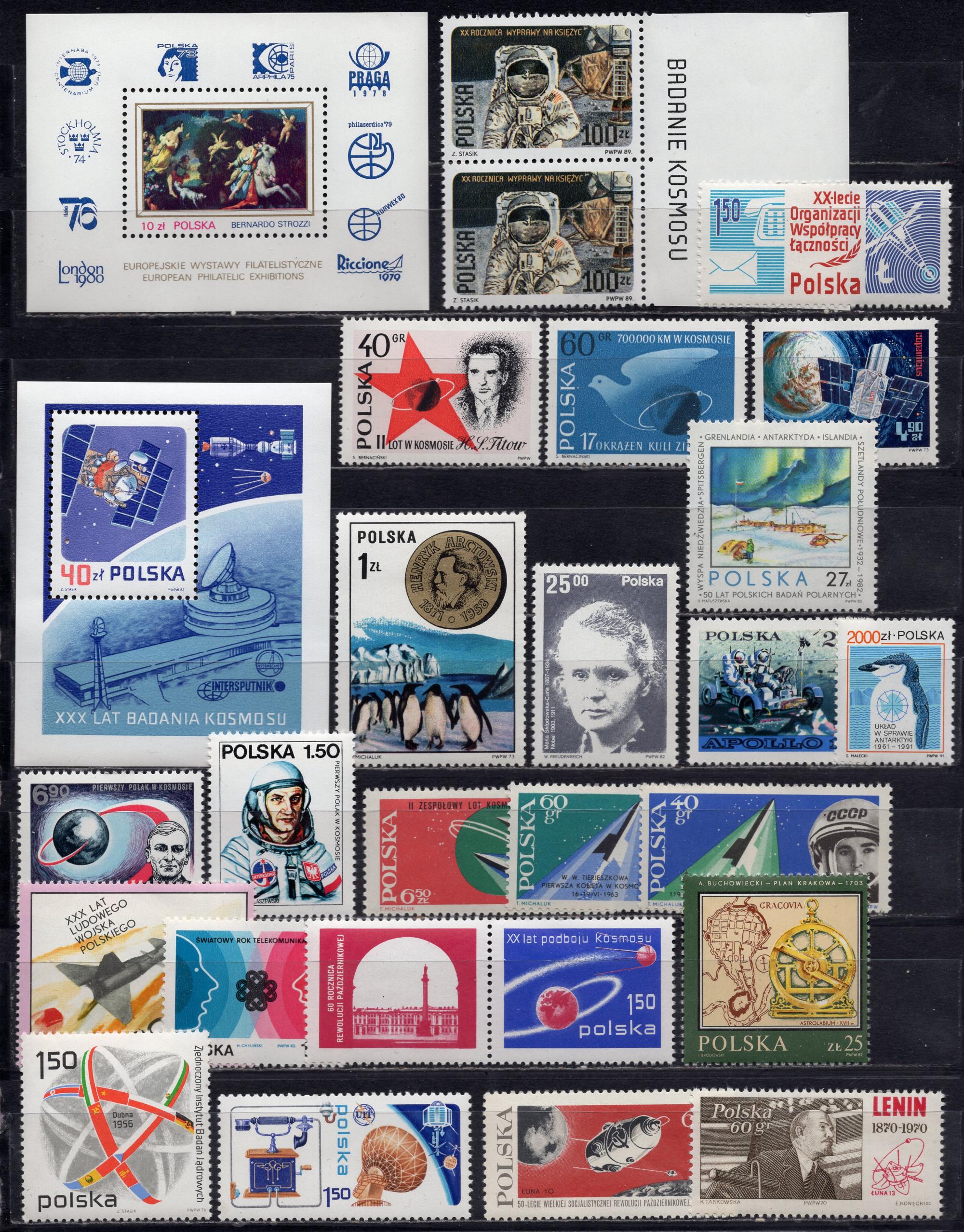 Почтовые марки. Польша, 1961-1989 г. Космос. Мария Кюри. Антарктика. Сб. лот. №1257-1258, 1415-1417 etc.